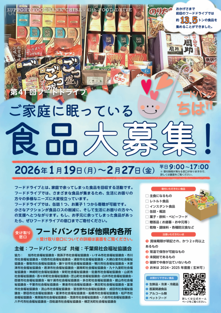 1/19(月)から「第41回フードドライブ」が始まりました。