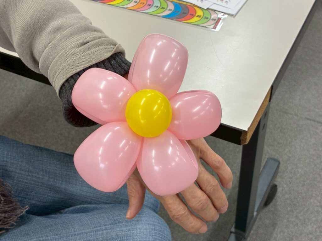 町社協職員による「ボランティア」についての講義の後、バルーンアートサークル「ピッコロ」(印西市)より日々の活動の報告とあわせて、バルーンアートの体験が行われました。